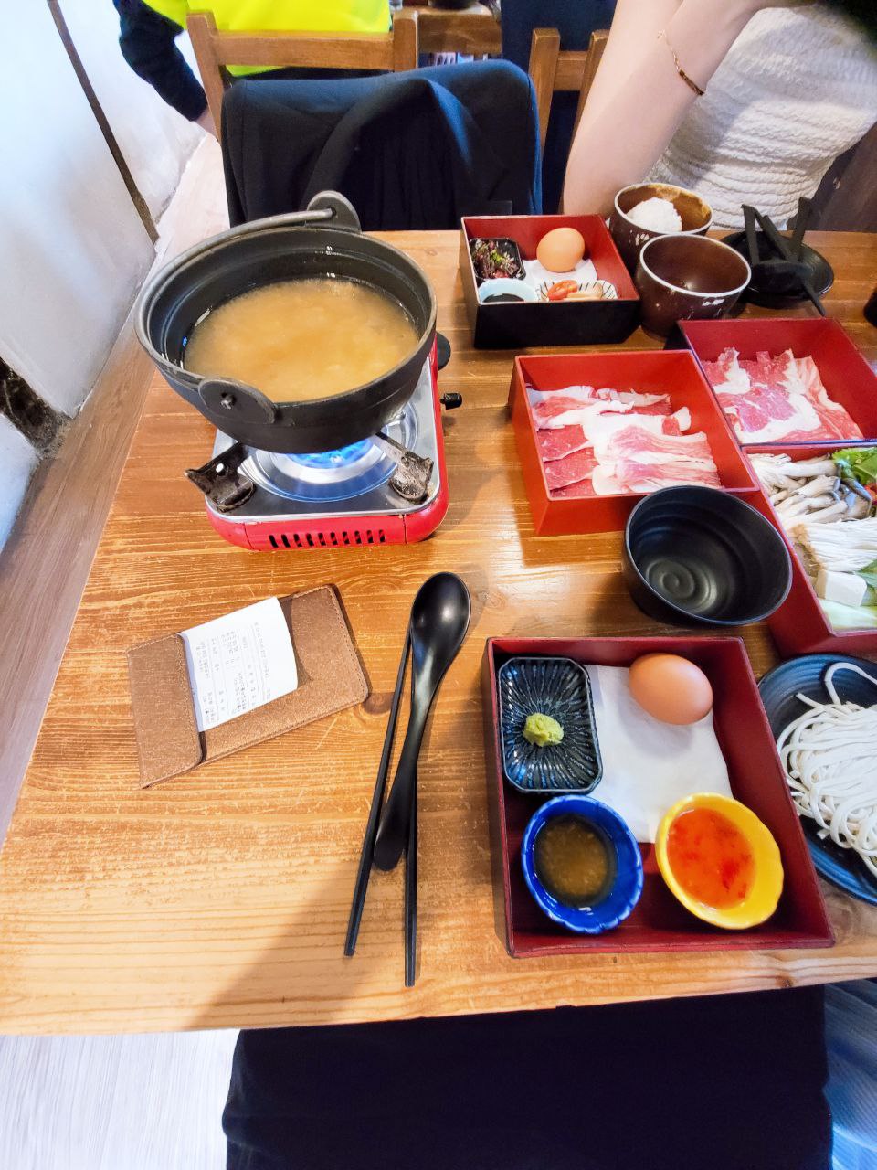 음식을 주문하면 기본적인 세팅과 각각 버너와 샤부샤부 육수를 세팅해 주십니다!