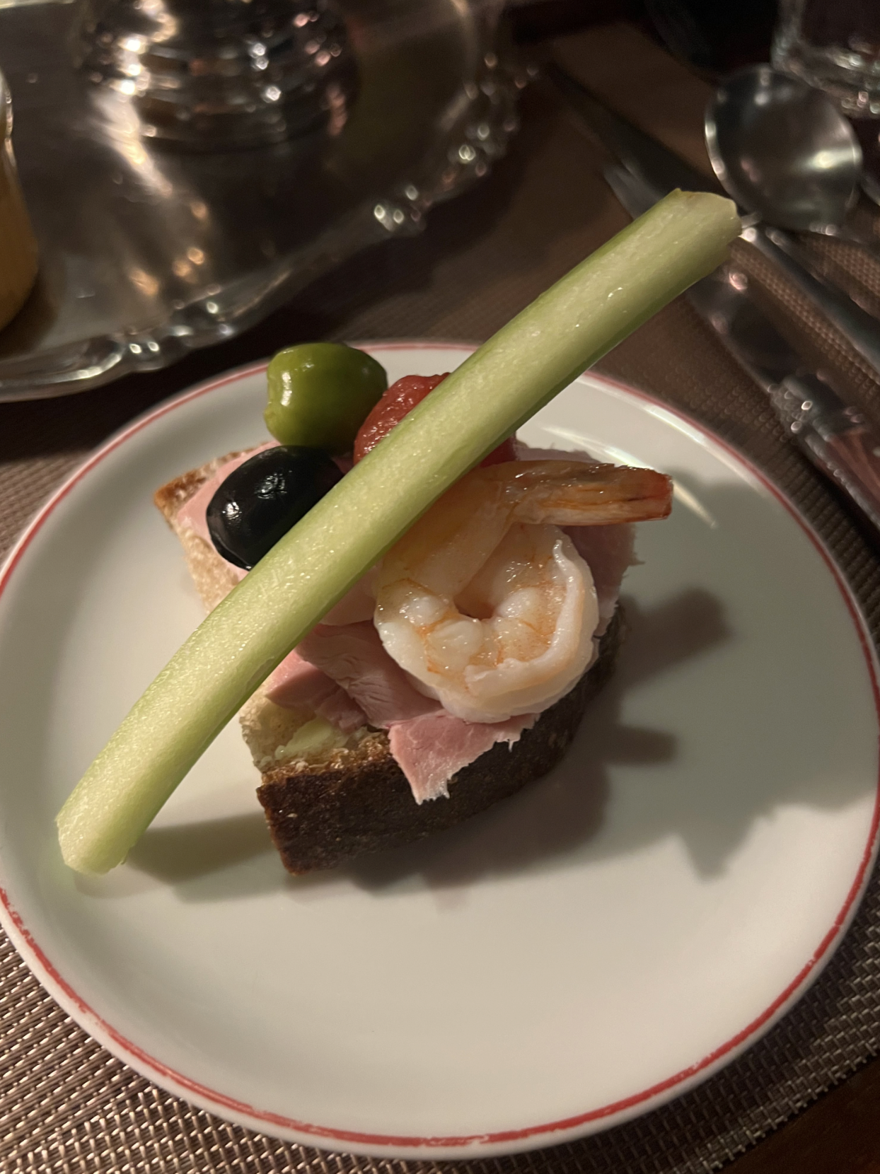 새우, 올리브, 토마토, 차지키 소스를 발라서